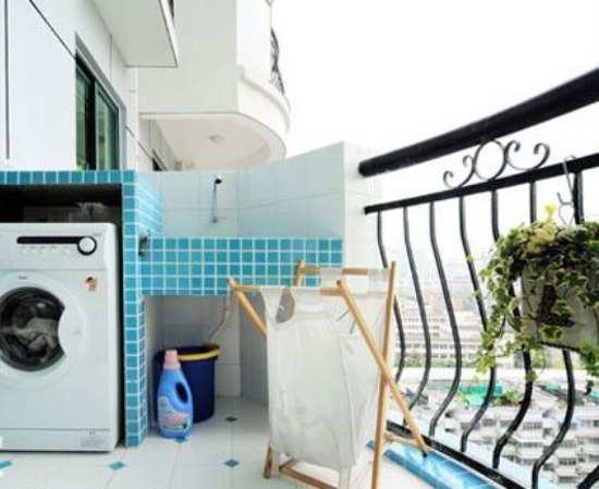 左边可以放下洗衣机,右边则设计成洗衣池,在这个透着新鲜空气的阳台里,洗衣不再觉得枯燥无味。