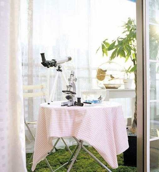 阳台本身就具备良好的观景效果,如果钟爱大自然,可以用装修草坪铺满阳台,再布置一些绿植盆栽,随时可以实现与大自然亲密接触。架个望远镜在此,这个阳台就是一个专业的观景台啦!