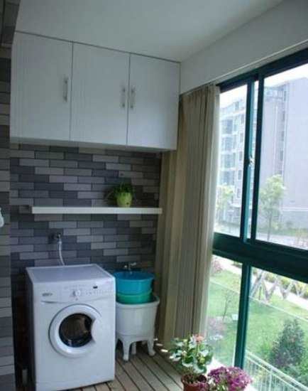 如果卫生间够大,可以顺便将洗衣机容纳,兼职当个洗衣房。可是如果卫生间太迷你,你可以考虑放在阳台,洗完衣服还可以随手晾了,何乐而不为。
