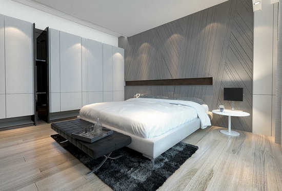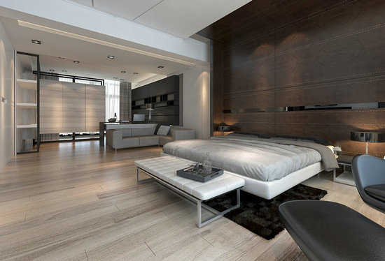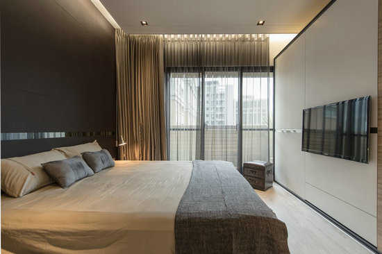 编辑点评:延续低调时尚的气氛,深色主墙透过细致的镜面线条点缀,一展精品旅店的都会品味。