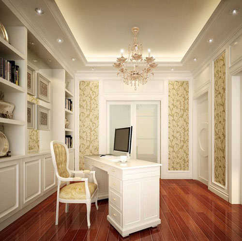 淡紫色灯光的烘托下,书房也可以变的很浪漫。