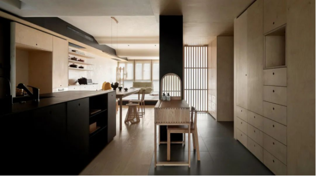 以下这套案例是设计师的自宅,整体的风格设计参考了一些中国园林景观与日式风格的设计手法,主要利用木材与低饱和度的颜色,展现出一个自然舒适、放松自在、每个人都能够愉悦轻松生活的家。