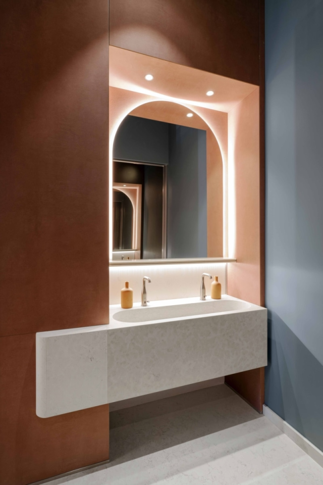 立面是酒店的关键特征,设计师将建筑的历史元素与现代设计相融合,立体雕花与粉色立面带来了独特的视觉吸引力和个性。