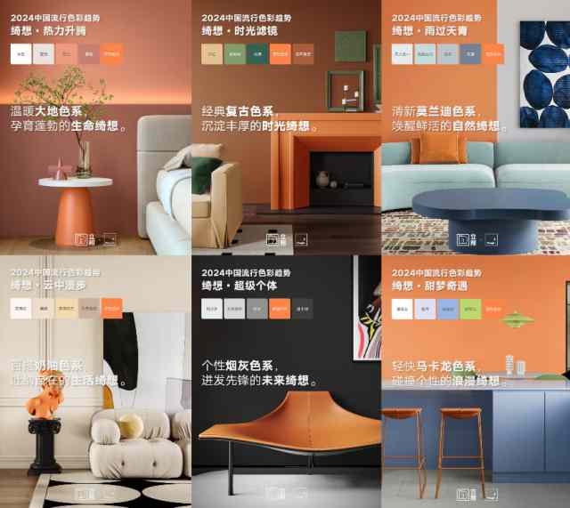 2023年9月4日,立邦连续第三年携手中国知名色彩专家宋建明及北斗星色彩团队深度挖掘中国家居色彩需求,正式发布《2024中国流行色彩趋势》。基于全面的色彩调研以及对时代潮流的洞察,2024年中国流行色以“绮想”为趋势主题,推出了年度主推色“奇想世界”,通过充满能量感的橙色为家居日常提供了新的生机。