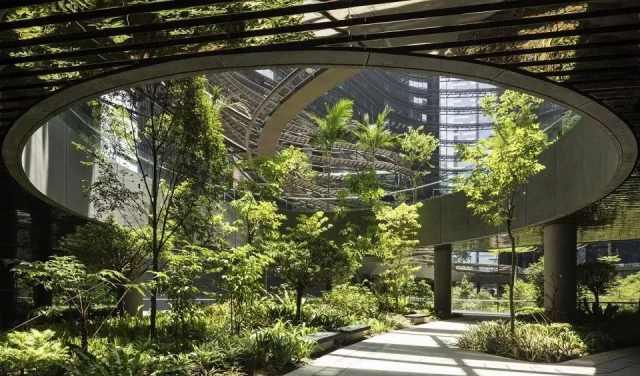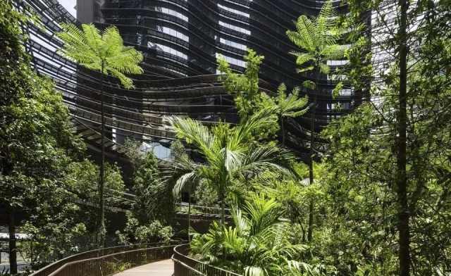 “生命之树”鼓励探索,访客在四层连接层可以前往不同的目的地,尽情享受餐饮、剧场、康体、办公、共享办公及生活空间以及户外设施。户外绿色阶梯从连接层一直延伸至商场7层,方便访客轻松屋顶花园,这也是新加坡中央商务区最大的城市屋顶花园,面积约5,000 平方英尺。