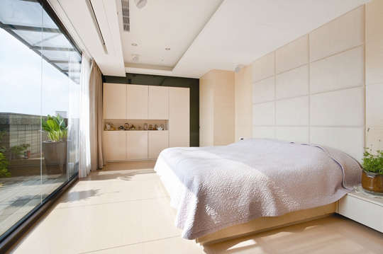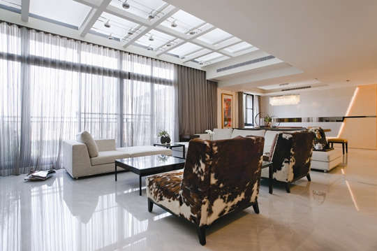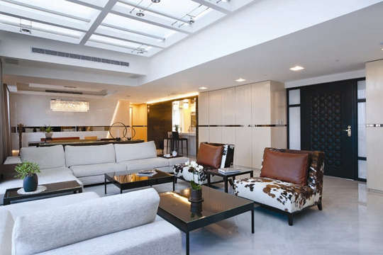 编辑点评:设计师用大面积落地窗代替厚重的墙壁,加上透明玻璃的天花板设计,大尺度地提高了空间的采光率,延伸空间视觉效果,打开整个空间的视野,使整体空间显得更加明亮大气,时尚奢华。