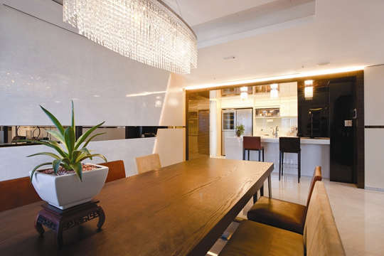 编辑点评:花式吊灯不仅装饰了天花板,提亮了空间,还和隆长型木桌相映衬,增加空间的对称美,共同延伸了空间的视觉效果,增强空间感。这吊灯减少了不大的空间里产生的压抑感,实用又美观。