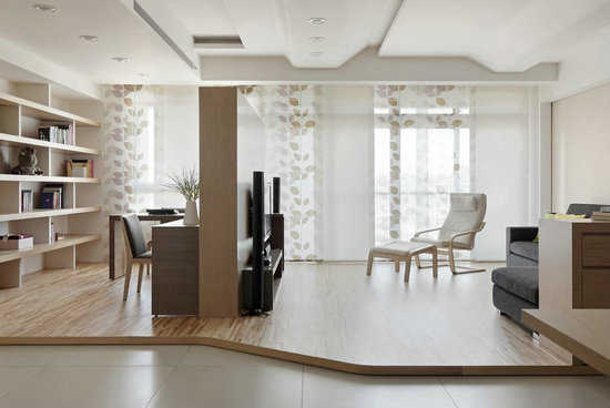 编辑点评:环形动线的设计让生活也能像风一样来去自如,赤脚踏在相连的架高木地板上,或坐或躺随心而定。