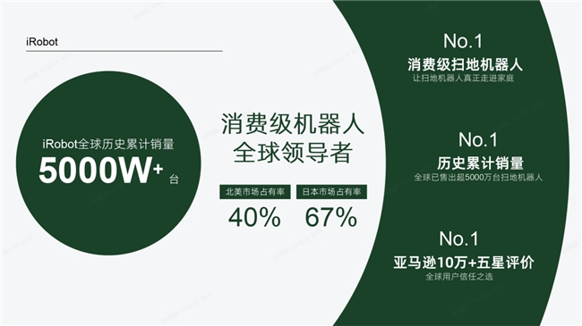历经多年市场验证,iRobot的专业实力早已获得全球消费者的高度认可。全球累计销量突破5000万台,北美市场占有率达67%、日本市场占有率40%,亚马逊平台斩获10万+五星评价,成为全球5000万家庭的共同选择。从普通家庭的日常清洁,到养宠家庭的深度清洁需求,iRobot凭借强劲的清洁能力、智能的规划导航功能,高度适配多元家居场景。无论是自动识别房间绘制清洁地图,还是脏污识别与避障,都让消费者体验到智能清洁的便捷,众多用户直言其“大幅减少家务工作量”,成为家庭清洁的刚需伙伴。