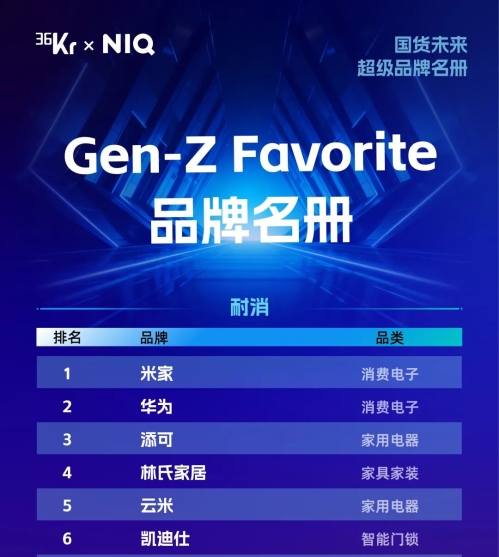近期,36氪联合尼尔森IQ正式发布“国货未来 超级品牌”名册。在这份旨在寻找能够穿越周期、定义新时代中国消费品牌的权威评选中,林氏家居凭借其与年轻消费群体的深度连接,荣登 “Gen-Z Favorite品牌名册(耐消)”第四位,与米家、华为、添可等各领域头部品牌齐名。