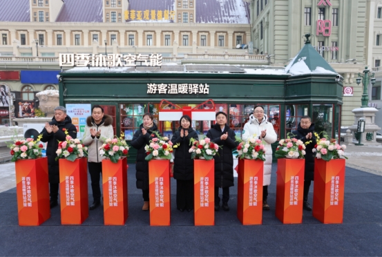 索菲亚广场游客温暖驿站开馆暨太空双能光伏直驱系列新品发布仪式在哈尔滨隆重举行。此次活动既是哈尔滨升级 “宠客” 服务、树立温暖文旅新标杆的有力举措,也是四季沐歌空气能在极寒地区推广绿色清洁能源的重要实践。