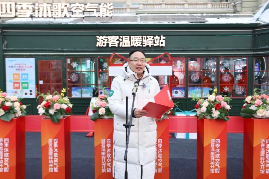 中国节能协会副监事长兼热泵专业委员会秘书长赵恒谊在索菲亚广场游客温暖驿站开馆活动上致辞,对温暖驿站启用表示热烈祝贺。他指出,在“双碳”战略及相关行业方案指引下,四季沐歌连续三年打造的温暖驿站体验场景,是空气能产业与文旅、冰雪产业融合的成功实践,为行业树立范例。赵恒谊强调,空气能热泵相较传统采暖更节能环保,四季沐歌为温暖驿站供暖及在漠河、抚远等严寒地区落地的应用项目,充分验证了该技术在极寒环境下的稳定高效与可靠适应性,为行业技术推广起到表率作用。