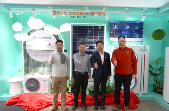 四季沐歌真爽光伏直驱空调、绿金刚光伏电热水器、光伏直驱热泵 三大太空双能新品重磅发布,引发全场瞩目。