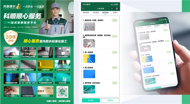 针对这一现状,科顺股份(股票代码:300737)旗下民用建材品牌科顺建材重磅打造科顺顺心服务体系,以“产品+施工+质保+服务”的一站式解决方案,重塑家装服务标准。标志着科顺建材从领先的“产品提供商”向卓越的“一站式民用建材解决方案服务商”的深度转型,其核心是通过 “标准化服务流程+可视化过程管理+长效质保体系” ,为消费者带来“省心、省时、省力”的终极家装体验,并郑重兑现科顺 “一次防水,一次就好” 的品牌承诺。