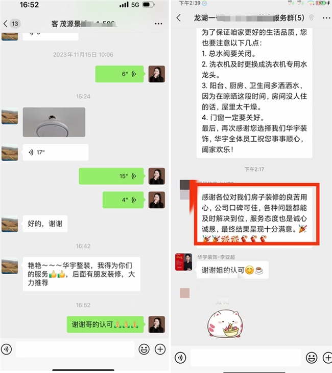 考虑到老房改造后可能出现的售后问题,华宇装饰的服务更是 “贴心到底”:隐蔽工程保修 5年,基础工程保修2年,还提供终身维修服务,每年会主动上门为已完工客户做 “一年一检”,检查水电、防水等关键部位,有小问题当场处理。“我家老房改造完3年了,去年华宇的工作人员还上门检查了水管,这种负责任的态度太难得了。” 业主刘先生的评价,道出了很多老客户的心声。