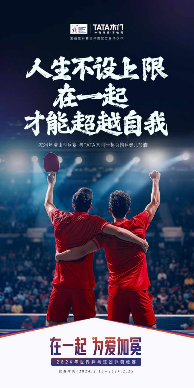 春节期间,世乒赛盛大开赛。这不仅是一场世界级的体育盛宴,也是全球乒乓球爱好者的团聚时刻。TATA木门以“在一起为爱加冕”为题,共同见证中国国乒在世乒赛上的辉煌时刻!
