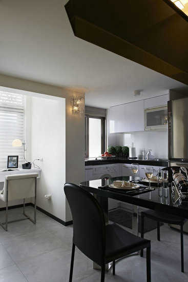 编辑点评:书房、餐厅、厨房,由转角的三个不同面向,巧妙安排完整机能。得天独厚的4米楼高,创造出高低落差的景深变化。