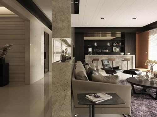 编辑点评:以安格拉珍珠大理石仿古面处理的吧台,可在温润抚触中品尝美酒,卸下一身疲惫。