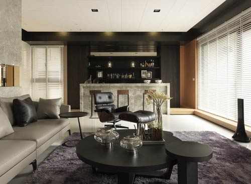 编辑点评:设计师将吧台规划于同一开放空间中,是客厅也是Lounge bar。