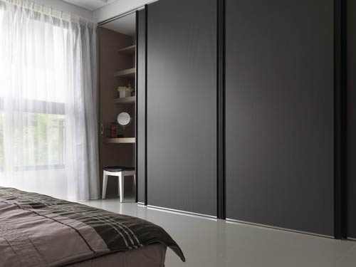 编辑点评:贴满薄膜贴纸的茶镜,修饰镜面反射的利落感,其中一门隐藏了女主人的梳妆台。