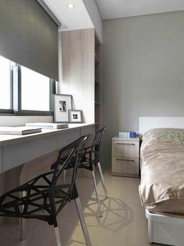 编辑点评:灰色主题的男孩房,以简约清爽的调性为主。