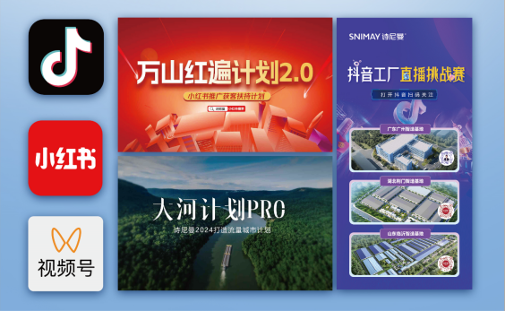 在存量时代,为助力经销商破局增长,诗尼曼打造抖音同城&小红书KOS2.0矩阵,打响“万山红遍”计划,以总部资源引流终端,助力终端门店坐享流量支持;开创总部工厂DTC直播推广,直接链接经销商和用户,展现诗尼曼强大的智造实力、高效的优质产品供应效率;首创“大河计划PRO”抖音帮扶项目,为终端门店提供新媒体运营的专业指导和资源支持,帮助终端门店从“流量小白”升级“流量王者”。