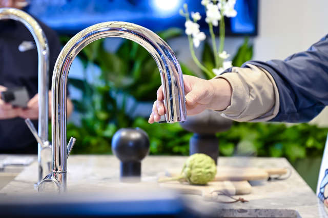 来到厨房区域,汉斯格雅联袂厨房净水专家碧然德BRITA,呈现了全新的SilicaTec®晶莹厨房空间。雅可茹M91厨房净水龙头尊享独有集成系统:可抽拉式设计,增加冲洗范围;Select按键一按即出净水。突破性地将净水/自来水龙头合二为一,让厨房水槽区域更整洁易打理。汉斯格雅联合石槽发明者硕科SCHOCK研发的Lahti拉蒂SilicaTec ®晶莹石英石水槽,材质触感细腻,抗刮擦、耐高温、易清洁;搭配不同款式的M91厨房龙头,适配更多烹饪环境。
