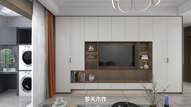 入户是一个狭长的过道,利用现有的格局,设计一款内嵌式玄关柜,藏露结合,集收纳展示于一体,恰到好处的起到“留白”的意境。靠近入户门处,柜体做开放式挂衣区与换鞋区,方便业主进出换衣换鞋。