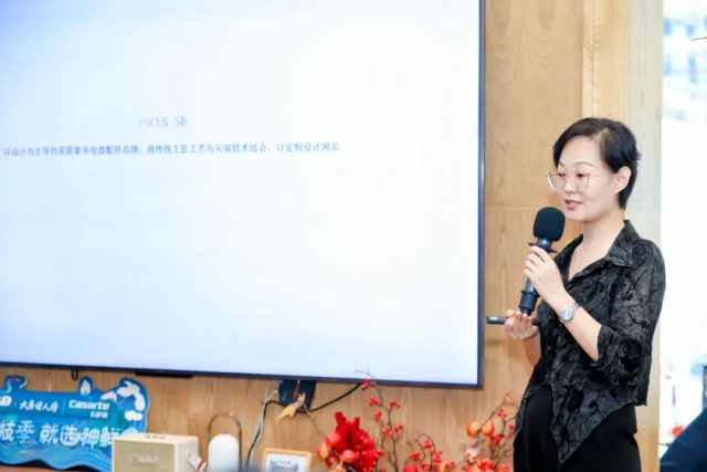 郭曼为大家带来了《生活之美》的主题分享,详细介绍了四个因“美”而著名的国际品牌(英国豪华电器配件品牌Focus、奢侈家纺品牌Royalcover、葡萄牙顶级餐瓷品牌Vista Alegre、印度的手工地毯品牌Jaipur)。她表示,生活并非千篇一律,生活之美更在于看见、感受与触及,日常生活中物件的适用便利,持久美观尤为重要。她借由《思考建筑》中的一段话结束了分享。“适于我们的生活在其间和其周围延续,适于楼板上的脚步声,适于专心工作,适于安然睡眠。”——著名瑞士建筑设计师Peter Zumthor。