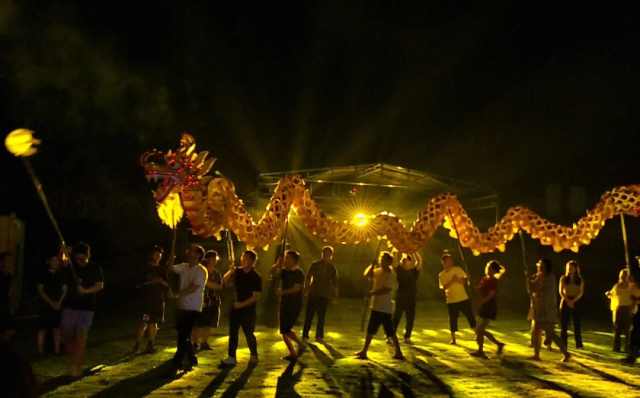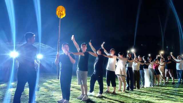 晚风习习吹不散大家的热情,新锦成销售公司总经理梁睿点燃熊熊焰火,与所有成员击掌打气,带领大家舞龙逐珠,气氛瞬间到达高潮!