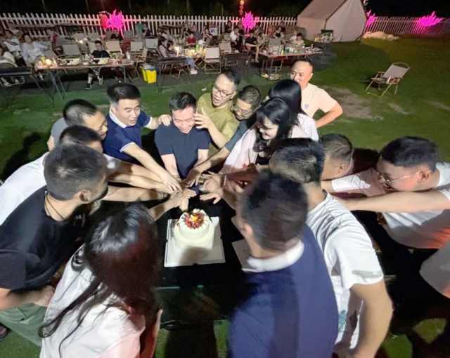本次团建之夜的温馨环节,是圣堡龙为6-8月生日的同事准备了生日祝福与惊喜。当生日的祝福音乐响起时,寿星们在大家的掌声与祝福中围在一起,由梁总带领大家为他们送上了最真挚的祝福和生日礼物,共同庆祝这个难忘的时刻。