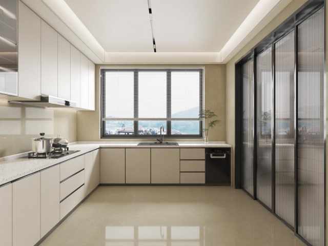 美味与温暖的诞生地,交流生活中的点滴,每一个步骤都充满了对生活的热爱。温和的暖色系理石瓷砖,不同的纹理走向给人以宁静而安然的感觉。