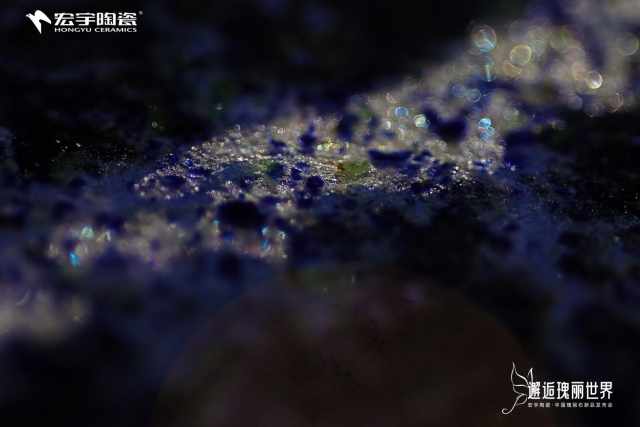 宏宇陶瓷历经数年潜心研发,将顶尖工艺融入瑰丽石之中:首先,它采用了8层星晶釉技术,犹如宝石般层层叠映,绽放瑰丽光芒;其次,包含了5种创新干粒配方,能使每片瓷砖犹如幻彩晶钻,熠熠生辉;第三,它结合了3D晶化釉面干粒复合技术,不仅提升了瓷砖的视觉冲击力,更赋予其细腻触感;第四,0.1毫米的精细雕刻工艺,则精准复刻了奢华石材的自然纹理,令人叹为观止。