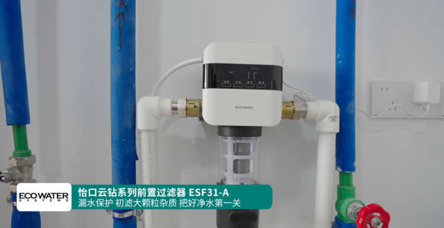 作为全屋净水系统的第一道过滤设备,怡口云钻系列前置过滤器ESF31-A初滤了自来水中如泥沙、铁锈、藻类等大颗粒杂质,从源头捍卫全家用水。同时,还可实现监测家庭用水状态,预防漏水,保障了家庭用水安全。