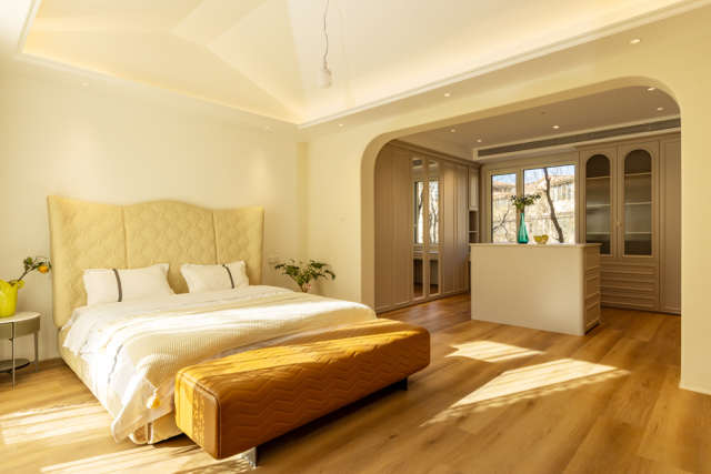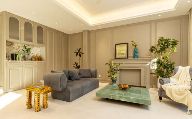 对应周女士提出的以上主要需求,设计师王娜给出了专业的设计方案。首先,设计师以随性舒适的现代美式风格为核心,于细节之中融入法式优雅元素,再点缀鲜明色彩,最终打造成了充满清新、雅致、质感的轻奢空间。整体居所既显美式风情,又兼法式典雅,营造出了轻松氛围与高级美感,彰显着业主的非凡品味。