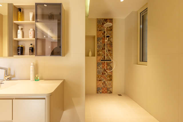 关于水路设计,考虑到从源头净化水质,设计师利用前置过滤器先行把关,经过初滤之后,水流按需分流:一路供至车库与露台,作为负一层和一层的生活用水;另一路再经中央净水机深度处理,继续分流,一路直达厨房的末端直饮机,专用于烹饪、直饮和食材净洗等,一路则通过中央软水机进一步软化,满足了四个楼层卫浴间、壁挂炉及涉水家电的全部需要。此外,设计师还在每层预留了水吧台位置,方便业主未来安装管线机实现即享热水的便利。怡口全屋净水系统不仅精准贴合了周女士及其家人对健康饮水与舒适用水的高品质生活追求,更在进行社交聚会时,彰显了业主独到的生活美学与高雅品味。