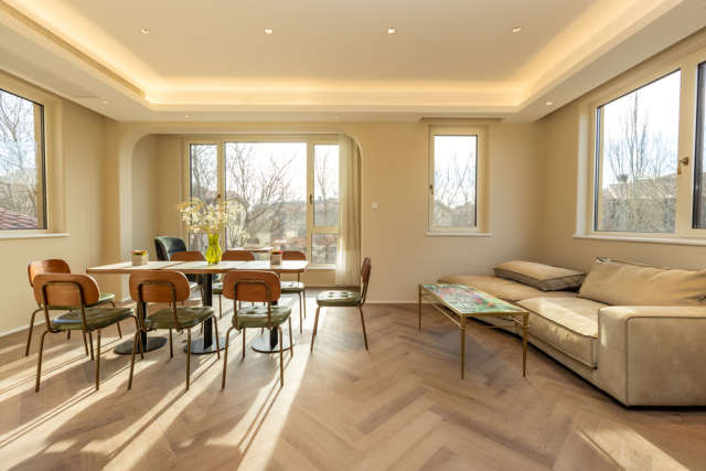 业主周女士和先生都是外企高管,家中独女现就读初中。此番斥巨资购置的别墅,是他们的第三处居所,距离夫妻俩的公司和朋友家都很相近。别墅坐落于北京顺义区一处涉外高档联排别墅区内,建筑面积达500㎡,分为地下一层、地上三层,共四层的宽敞空间。该社区住户,多为拥有国际视野的商务精英人士,不同的文化背景,共同营造了一个多元化的高端居住环境。