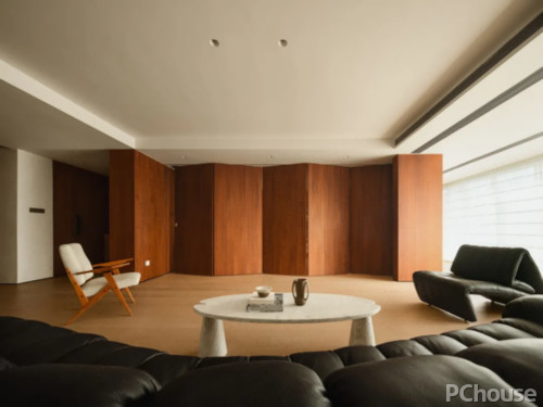 住宅的原始布局较为传统,客厅作为家庭活动的核心区域,往往受限于“渴望多一个房间”的诉求。折叠门的设计,将原本闭塞的房间与客厅巧妙相连,从而颠覆了传统房间的界限划分。