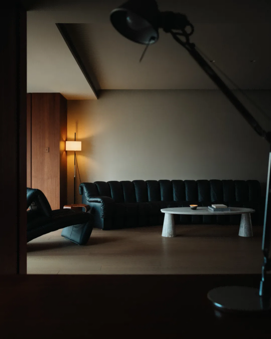 客厅主沙发和单人折叠沙发均来自De Sede,主沙发可以灵活拼拆弯曲,尽管不是完整的平面,沙发的舒适度依然很惊叹。台灯来自Santa & Cole。