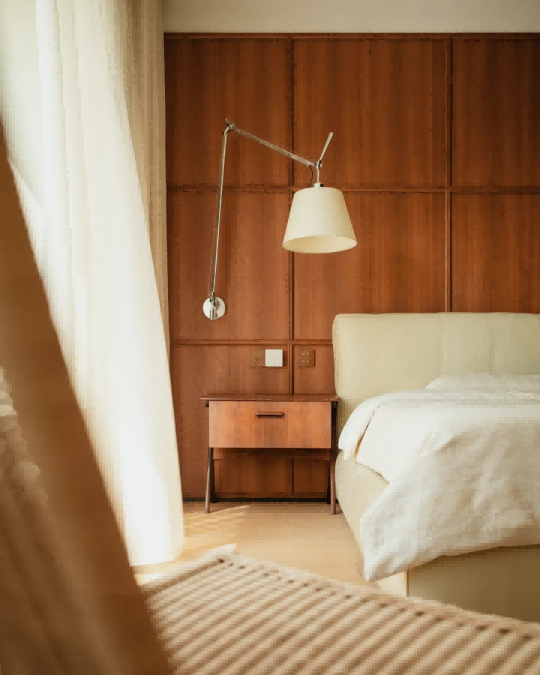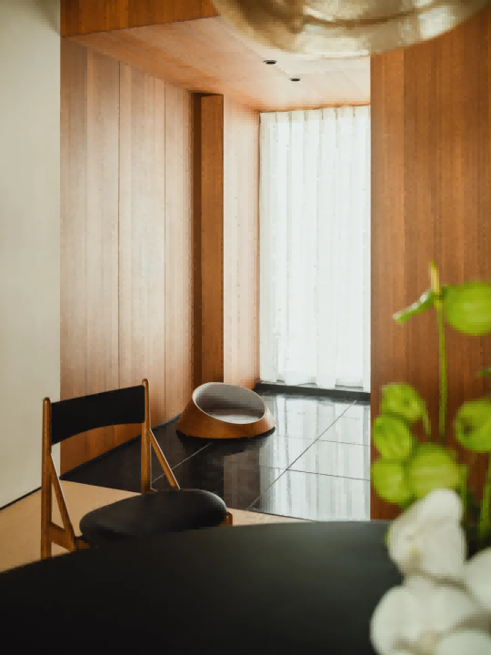 作为美术学院毕业的潮流品牌创始人的屋主,他们希望这所居所能同时满足审美与实用性,尤其是女主人对自然舒适的功能布局与贴近日常的审美意趣尤为重视。今朝风日好设计巧妙运用柚木的温润质感与其他材质的巧妙搭配,创造出一种既和谐又不失个性的碰撞,从而营造出一个更加契合“舒适长期主义”理念的生活空间。