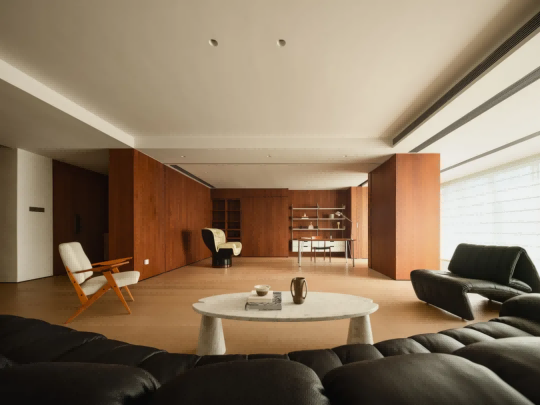 折叠空间、客厅与餐厅共同编织成一幅灵动的自然色彩画布,让生活的点滴痕迹随着时间缓缓沉淀,自然留存于每一寸空间之中。