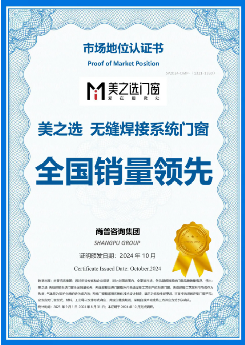 包括:中国系统门窗十大品牌、定制门窗工程技术规程参编单位、铝合金门窗影响力品牌,“以旧换新”优质服务商&行动先锋、2024年度“门窗工匠楷模”奖,2024首届全国建材与家居领域高推广价值专利大赛优秀奖专利,以及无缝焊接系统窗全国销量领先,铝合金门窗安装交付“标准参编单位之一,美之选门窗成为静音门窗团体标准制定者等.....这也是行业和消费者的认可与信赖!