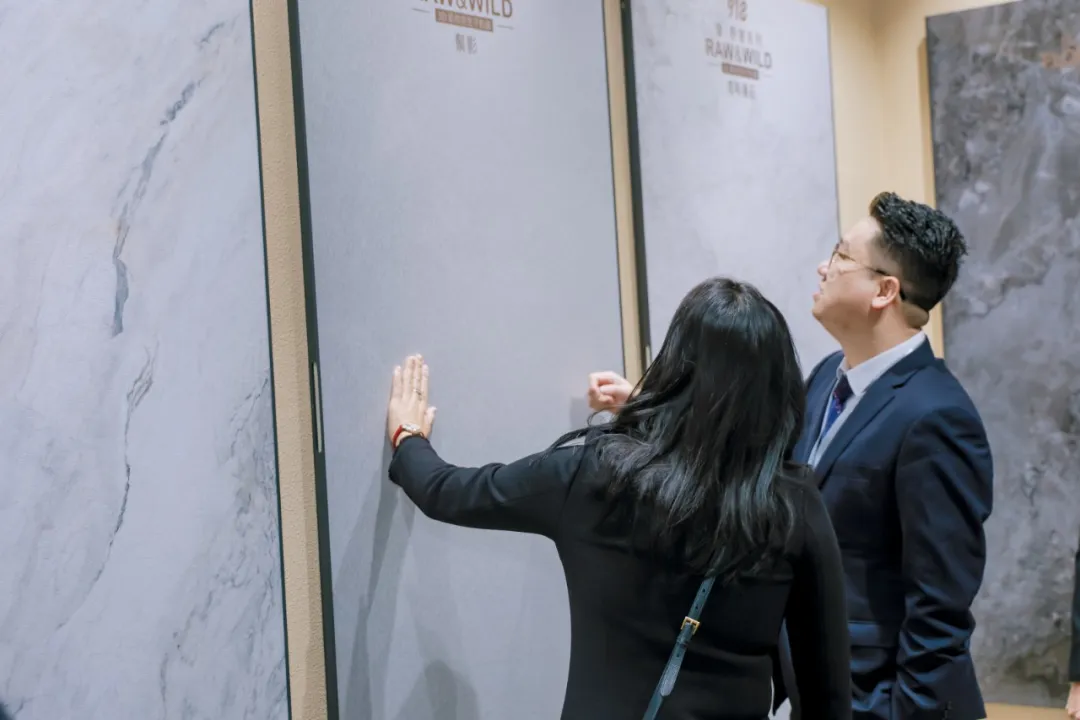 随着产品矩阵更加丰富立体,品牌所传达的“轻时尚美学”战略也逐渐清晰,不同的色彩、纹理、质感及肌理,呈现出了不同的生活态度。在此次品鉴会现场,QD瓷砖2025年度新品——炫·星岩及璞·野奢两大系列也正式发布。