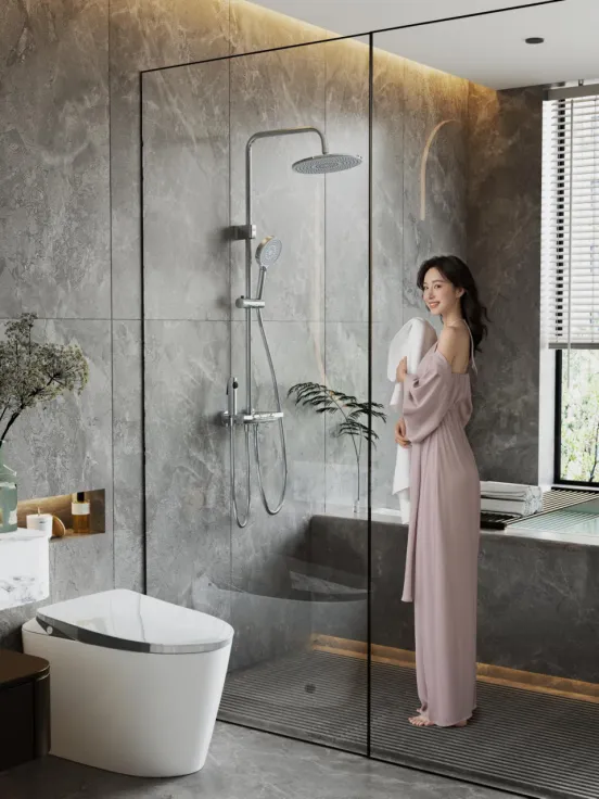 作为此次摘得“泛家居设计创新产品”的核心力作,JY15806淋浴柱是中宇厨卫对“科技守护,悦享沐浴”理念的极致诠释。这款产品跳出传统卫浴设计的桎梏,以材质革新与人性化设计重塑沐浴体验。