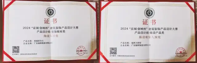 广东强辉陶瓷有限公司的质感原生石系列产品以及强辉大师馆分别荣获陶瓷入围奖和陈设软装入围奖,强辉再一次证明了其在行业内的卓越地位与无限可能。