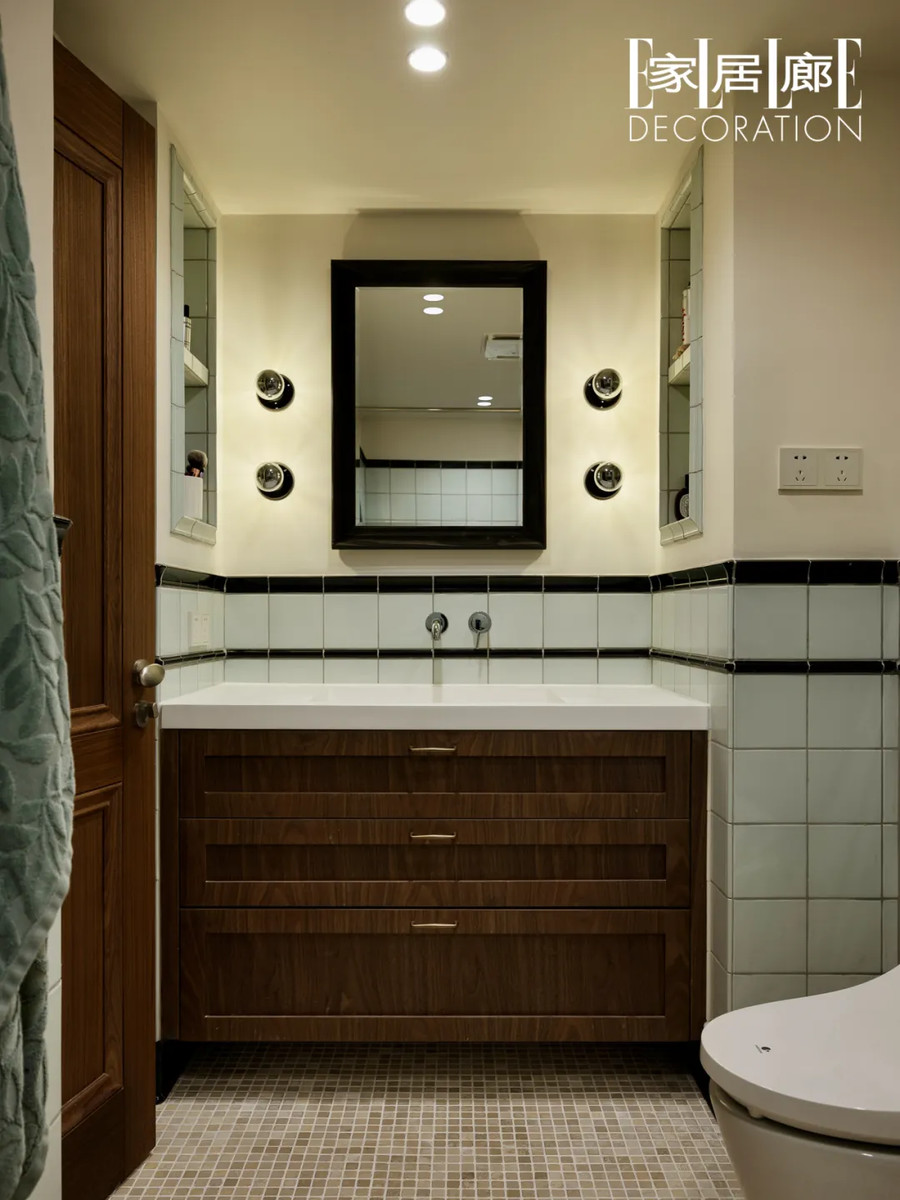 卫生间被设计成了三分离的形式,半墙瓷砖是两人挑选了很久才终于选到的心仪款式,和厨房的墙面相互呼应。