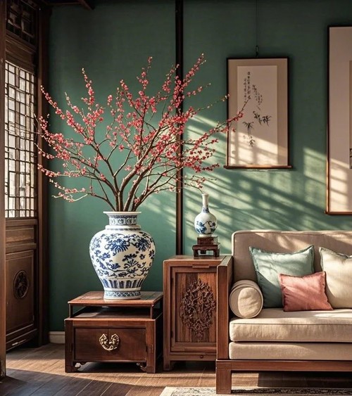 在室内装修中,绿色可以作为墙面,与褐色实木家具恰到好处的搭配,红色作为窗帘或地毯点缀,让整个空间既带有鲜明的时代色彩,又有着浪漫的人文情怀,处处都能感受宁静优雅。