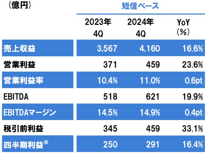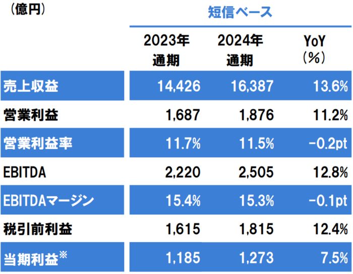 由于立时集团(NIPSEA)在包括中国在内的主要市场的销量增加以及日元贬值的影响,集团2024年全年实现综合销售额为16387.20亿日元(约合107.669亿美元或人民币776.64亿元),同比增长13.6%。营业利润1876.47亿日元,同比增长11.2%,得益于销售收入增长和产品价格上涨带来的毛利率改善。税前利润1815.22亿日元,同比增长12.4%;净利润1286.74亿日元,同比增长8.1%;归母净利润1273.37亿日元(约合8.366亿美元),同比增长7.5%。