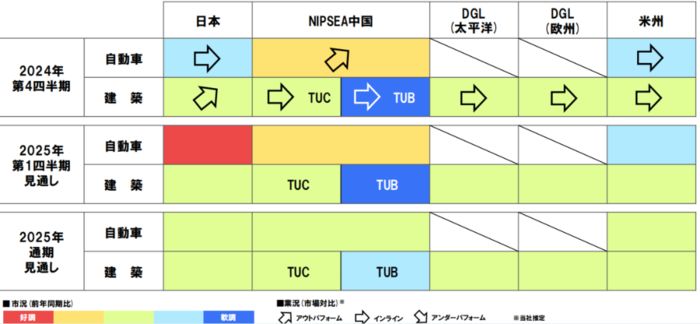 该公司表示,建筑涂料方面,由于TUC销量的增加和3~6级城市的增长,TUC业务2024年第四季度销售收入同比增加了2%;受房地产市场疲软的影响,TUB业务第四季度销售收入同比下降了18%。汽车涂料方面,在中国整体汽车产量增加(同比增长5%)的情况下,日本汽车制造商的产量疲软,但由于对中国制造商的销售强劲,销量有所增加。工业涂料方面,由于卷材涂料业务和一般工业涂料业务的强劲表现,销售收入增加。