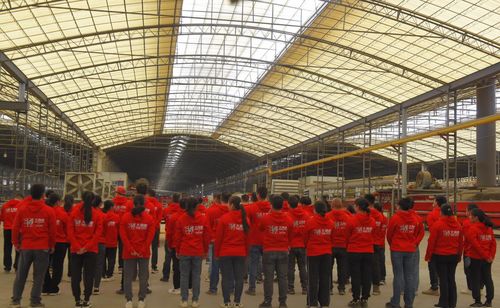 在点火仪式上,大角鹿新丰工厂的全体员工鼓足干劲,以最饱满的精气神和昂扬的斗志迎接新一年的工作挑战,他们郑重承诺,将坚定不移地落实“精益求精 质量第一”的生产原则,严格执行生产标准,全力以赴满足全球消费者对高品质超耐磨瓷砖的需求。